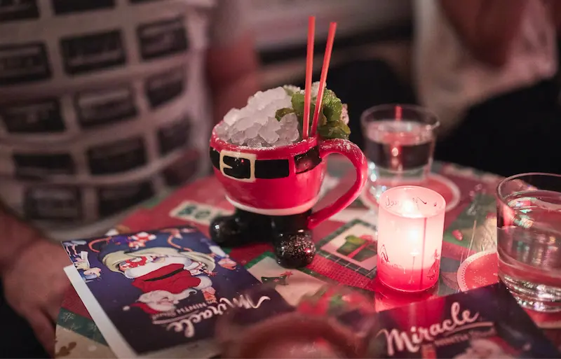 According to Mazur, Skopos is renowned in the region for its Christmas-themed cocktail pop-up, Miracle. Due to the high volume of business during this hectic time of year, Skopos prepared pre-batched cocktails with meez, which involved using a base or a few ingredients that are built upon to create the final product.
